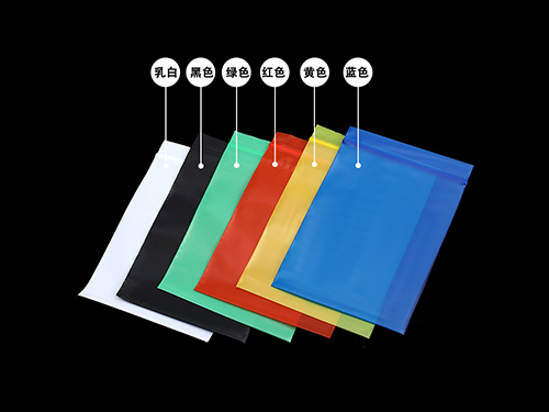 描述彩色自封袋由PE原材料生產,經特定膜口擠出吹漲成型。...